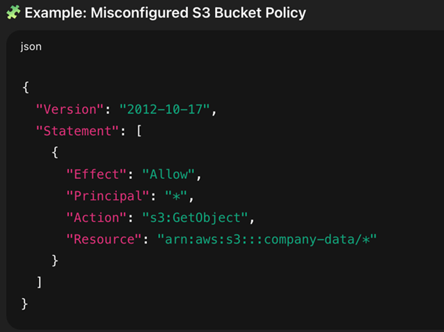- Improperly Configured Cloud Services: A very common and high-impact misconfiguration is improperly configured permissions on cloud storage services such as Amazon S3. Leaving an S3 bucket publicly readable can expose massive amounts of sensitive data to the entire internet.