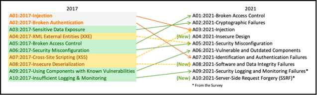 Figure 1: Comparison between OWASP Top 10 2017 and OWASP Top 10 2021